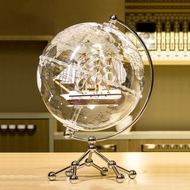 Wellfun Rotating Crystal Decor Modern Table Lamp Transparent Hand English Tumbler Novelty Gifts Globe Earth Globe Decor Globe