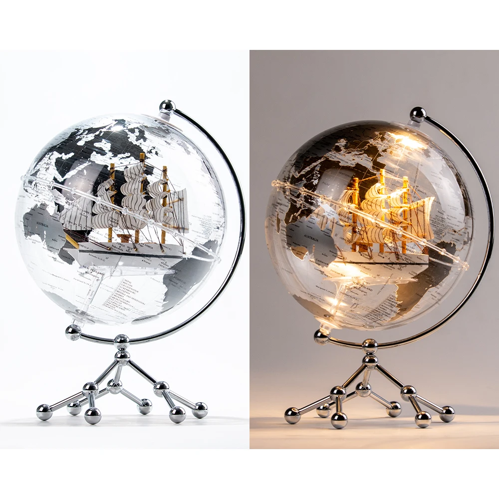 Bright Surface Rotating World Map Globe With Led Light Globes