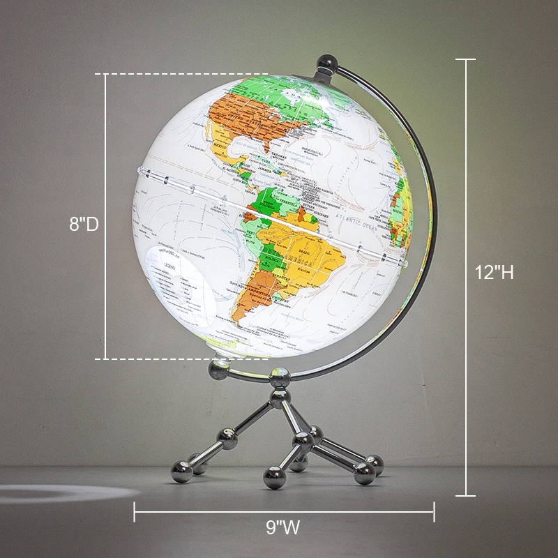Our world globe with stand is carefully produced with long-lasting materials, a durable and stable base, easy-read, high-quality printed map, and clear geographical details. More geography globes for education, home decoration globes, gift globes, plastic globes, metal geography globes, aluminum geography globes, and acrylic geography globes. Please visit our homepage to check.
