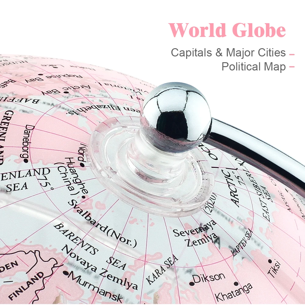 Our world globe with stand is carefully produced with long-lasting materials, a durable and stable base, easy-read, highly clear printed map, and clear geographical details. More geography globes for education, home decoration globes, gift globes, plastic globes, metal geography globes, aluminum geography globes, and acrylic geography globes. Please visit our homepage to check.