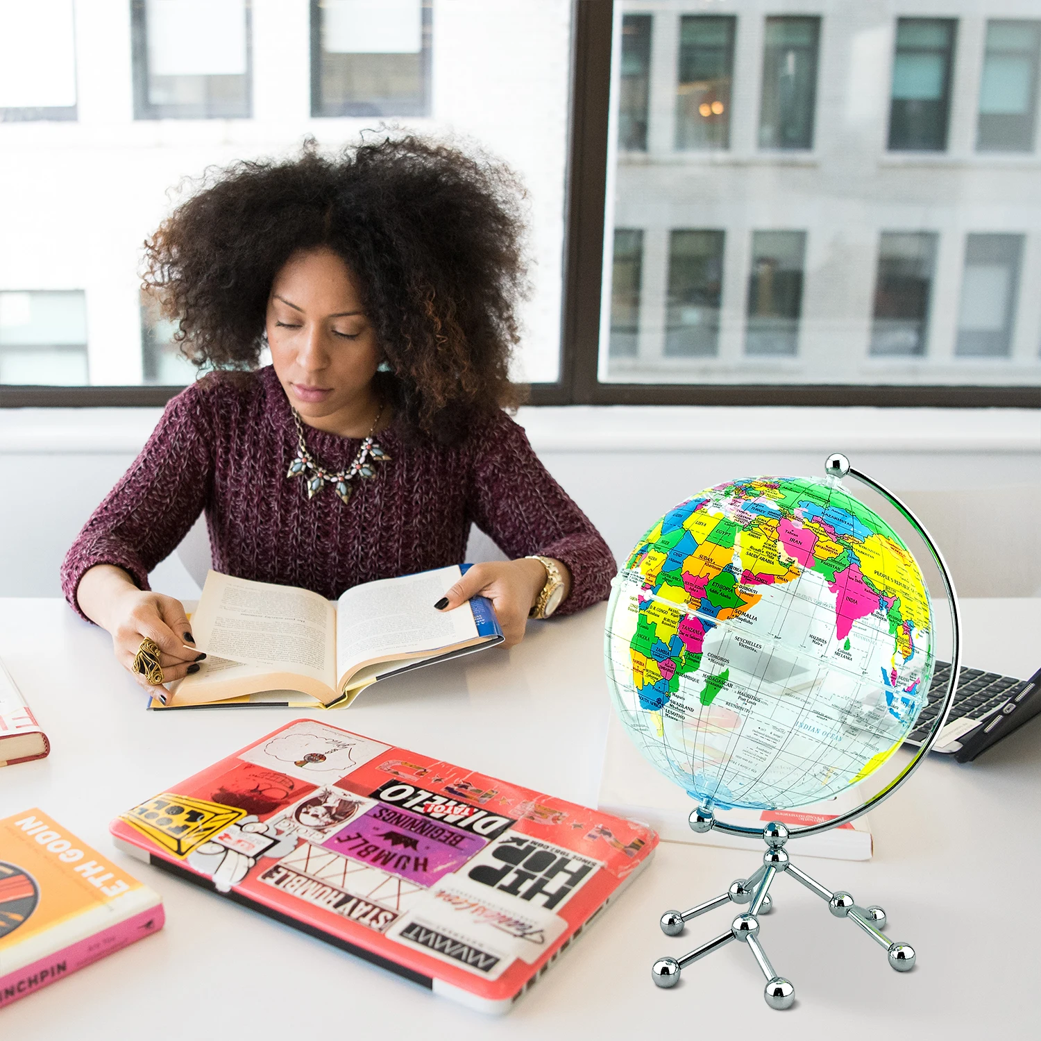 Our world globe with stand is carefully produced with long-lasting materials, edurable and stable base, easy-read high clear printed map, clear geographical details. More geography globes for education, home decoration globes, gift globes, plastic globes, metal geography globes, aluminum geography globes, Acrylic geography globes, Please visit our homepage to check.