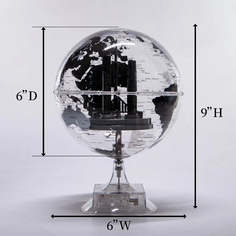 6-Inch Silver Rotating Globe Built-In Tourist Landmark Buildings